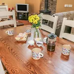 ダイニングエリア,石の暖炉と個別のトイレ,2室の客室を提供しています.別荘です. バスシ-トとタオルの他に食器洗い機と洗濯機は部屋等に利用できます. バスタブとシャワ-がバスル-ムにあります.